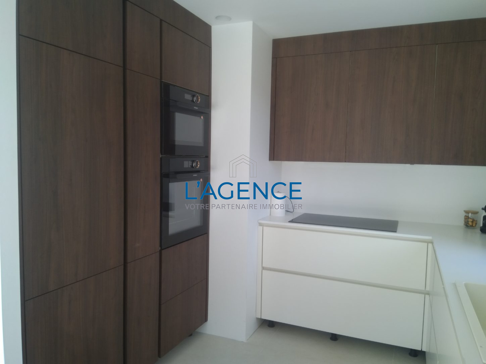 Elle se compose d'un beau séjour de 43m² avec cuisine semi-ouverte entièrement équipée donnant sur les terrasses et la piscine, deux chambres en suite parentale avec dressing.