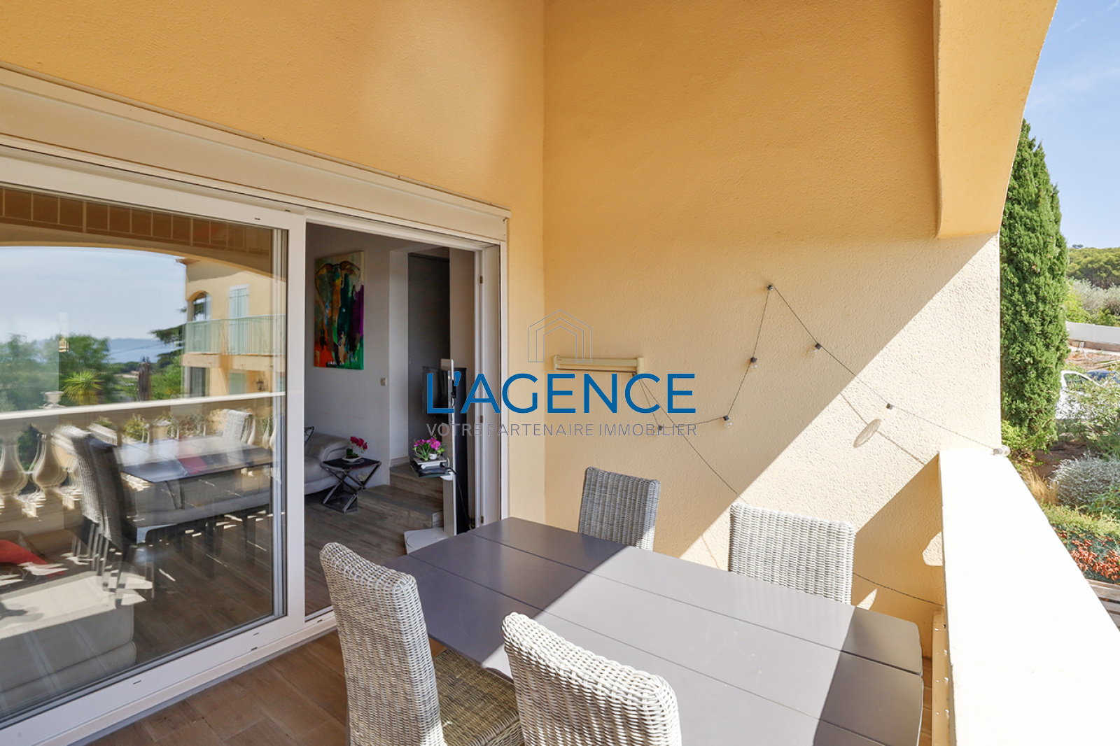 Carqueiranne (83320)Carqueiranne, non loin du centre ville à pied, Appartement T3 de 71 m2 habitables (55 m² loi carrez ) au 1 er et dernier étage d'une petite copropriété. Dès l'entrée l'espace de vie salon séjour cuisine us de 24 m2 offre une vue mer. Dans le prolongement une belle terrasse de 8m² . Mezzanine de 14 m² pouvant servir de bureau ou 3ème chambre. Dégagement avec salle d'eau et douche à l'italienne, wc séparé. 2 chambres chacunes avec placard, dont une avec balcon. L'appartement est en parfait état. Stationnement possible dans la copropriété. Le village de Carqueiranne est accéssible à 5 minutes à pied. Tres faible charges. GARAGE DOUBLE EN LOCATION 165€/MOIS