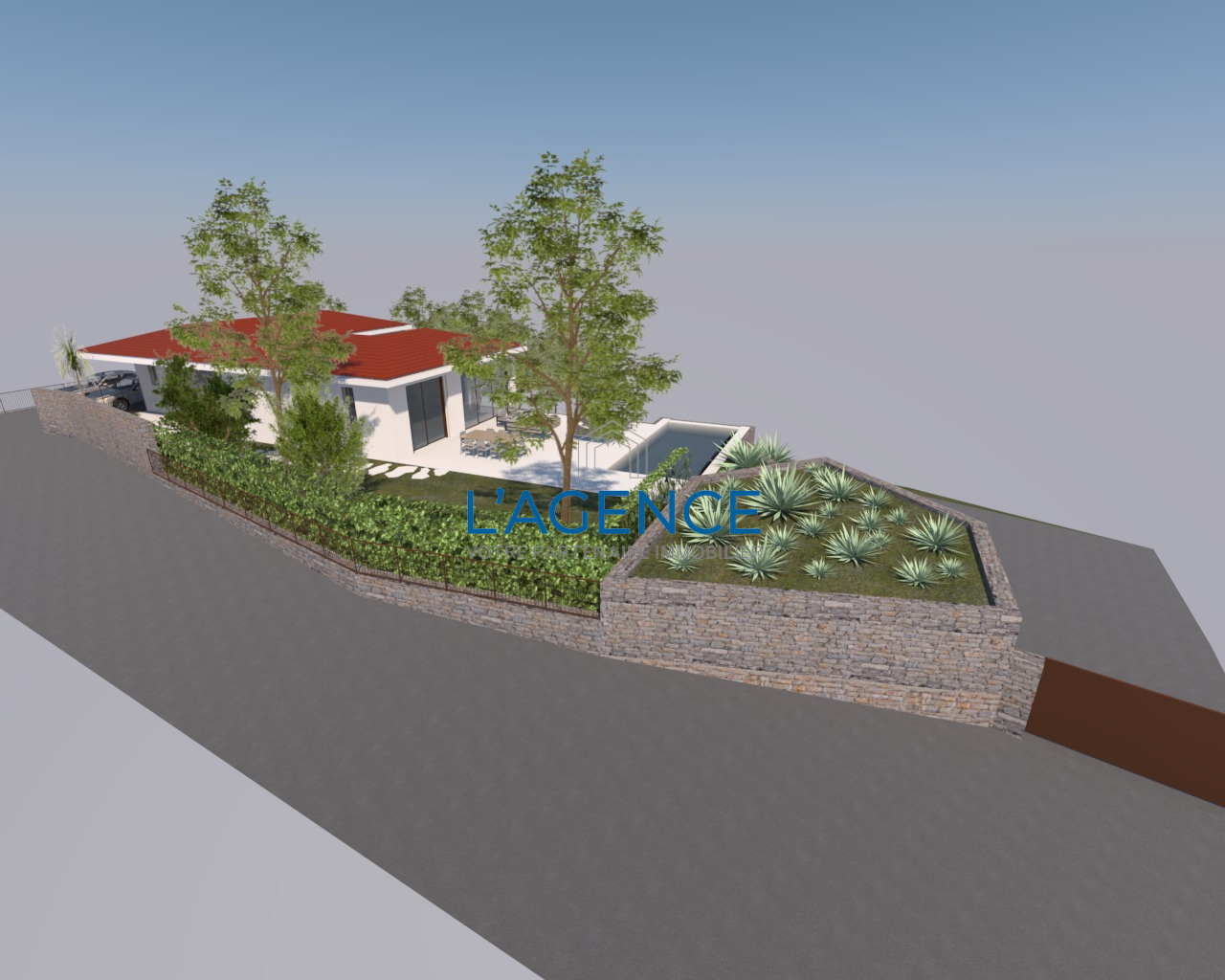 Carqueiranne (83320)Carqueiranne, sur les hauteurs avec vue dégagée, superbe terrain de 2950 m² avec permis de construire purgé et accordé pour une villa contemporaine de 210 m² avec piscine.