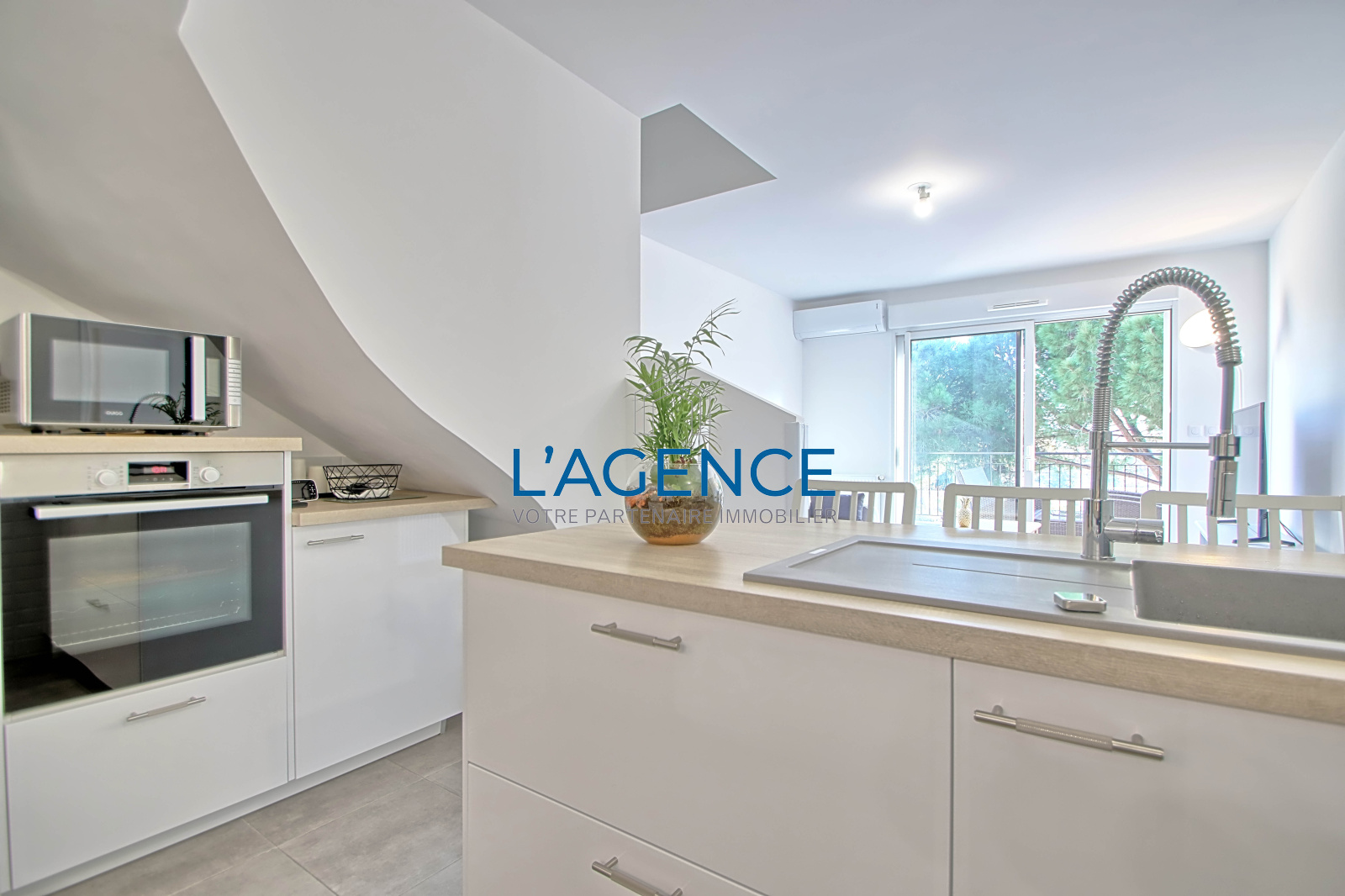La Crau (83260)La Crau dans une résidence de 2021, appartement T3 en duplex au dernier étage avec ascenseur offrant une vue dégagée. Séjour avec cuisine US aménagée et semi équipée de 24m² ouvrant sur une belle terrasse de 11,80 m² à ciel ouvert avec vue dégagée sur le parc. Une chambre de plain pied de 12 m² avec placard, salle d'eau, wc séparé. A l'étage un dégagement et sa 2 ème chambre de 18m² avec salle de bains ouverte. Cet appartement aux normes BBC et PMR est en parfait état, sans aucuns travaux. Climatisation réversible. Parking privatif en sous sol. Exposition Est. Commerces et écoles à pied.