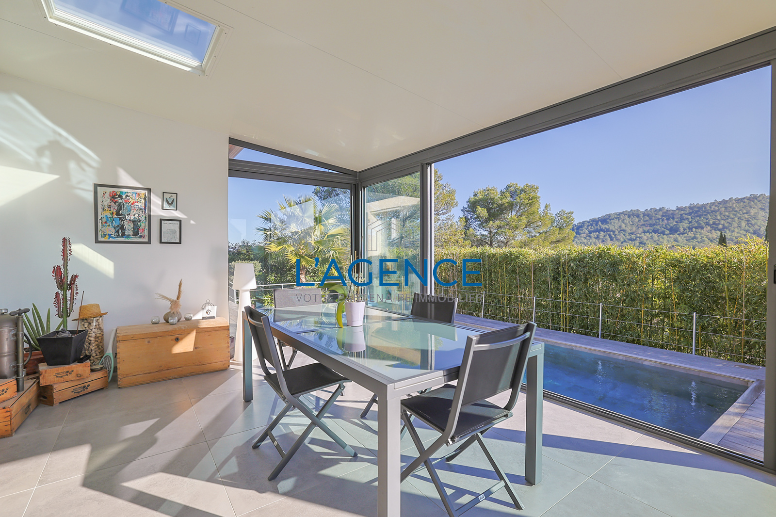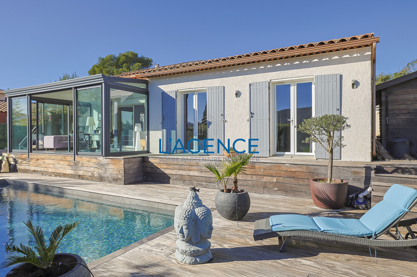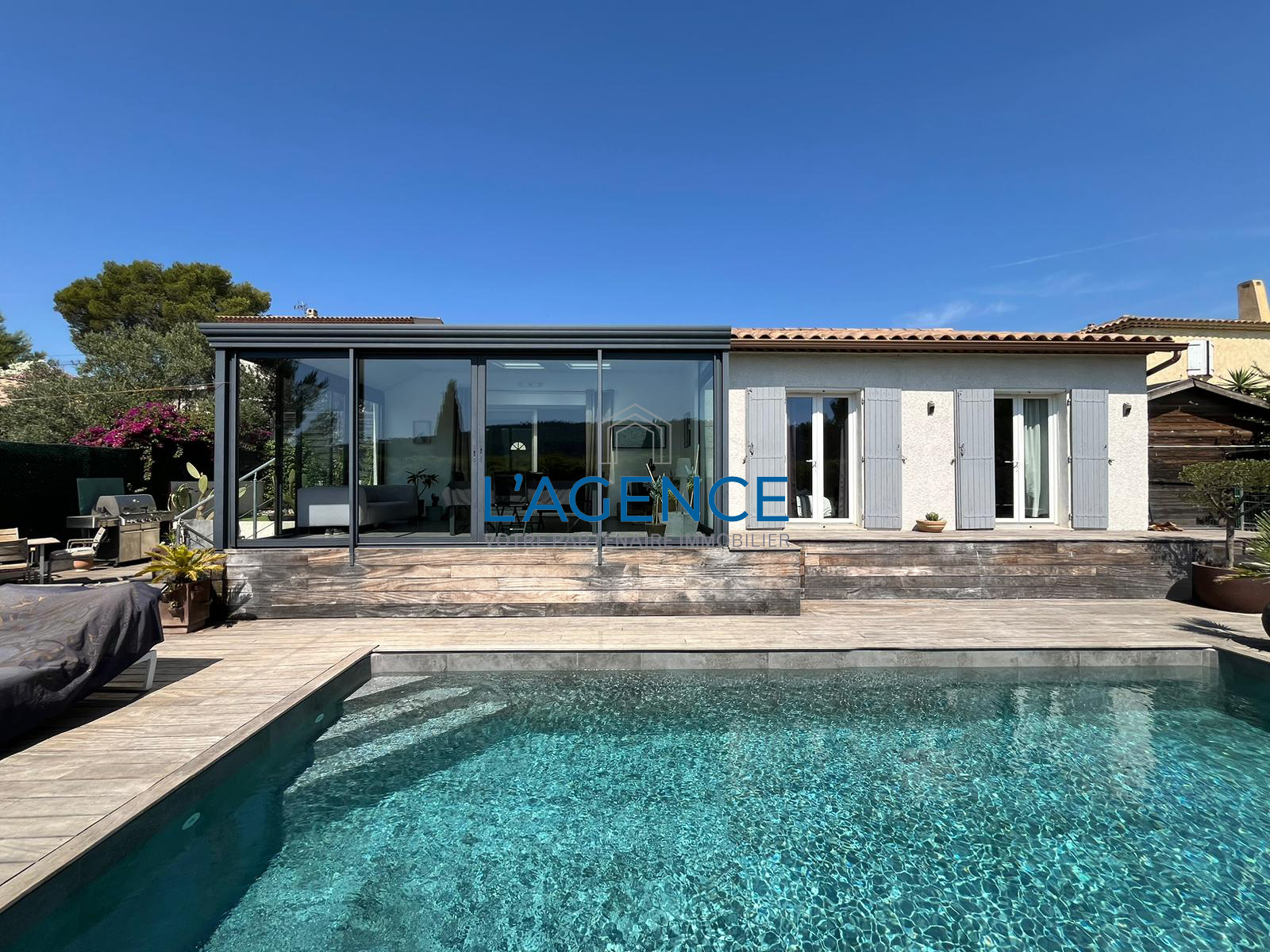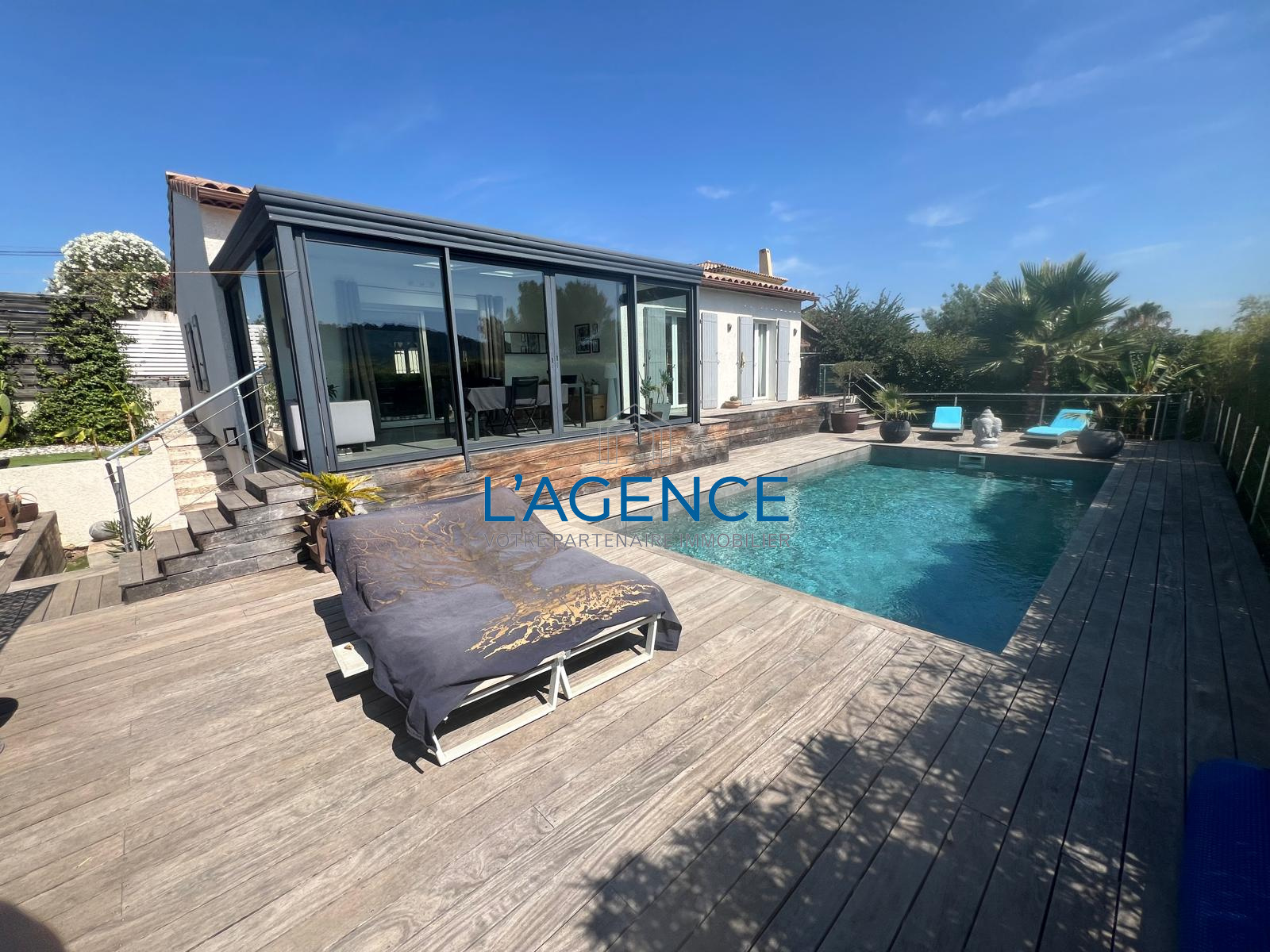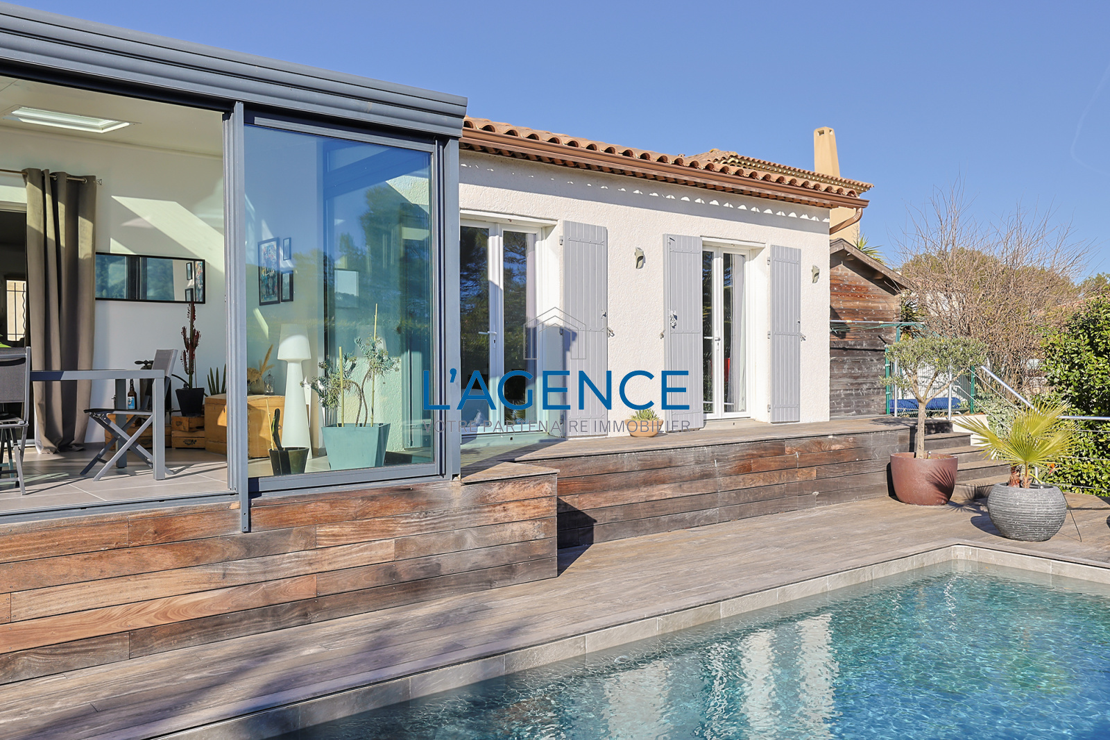 La Crau (83260)LA CRAU, 10MN DE HYERES, A PROXIMITE DE TOUT et ACCES RAPIDE VERS LES AXES, située dans un quartier résidentiel et au calme, cette villa allie confort, style moderne et espaces de vie agréables.125m² habitables de plain pied, coup de coeur pour la très belle vue dégagée sur les collines et les vignes. Coin vie très ouvert et aéré avec séjour salon cuisine de 48m² donnant sur l'espace véranda avec grandes ouvertures sur 3 expositions. L'espace nuit est composé de 3 chambres. Les extérieurs quand à eux vous séduiront par la superbe et vaste terrasse en bois exotique légèrement en contre bas, une piscine traditionnelle de 8x4m, sans aucun vis à vis ! Coin jardin exotique, le tout facile d'entretien. Bel espace parking.Portail électrique, récupérateurs d'eau, climatisation réversible dans toutes les pièces. Isolation ITE. A visiter rapidement !
